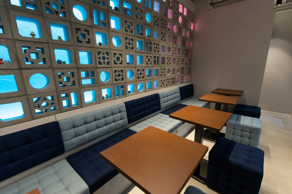 今のおすすめは、これらのローカル素材を「アクセント」としてモダンに昇華させるデザインです。 例えば、花ブロックをそのまま積むのではなく、白く塗装して店内のパーテーションとして使ったり、琉球石灰岩を薄くスライスしてバーカウンターの腰壁の一部にだけ貼ったり。 「伝統的なのに、どこか新しい」。その絶妙なバランス感覚が、他店との差別化を生み、SNSでもシェアしたくなる「映え」ポイントになります。